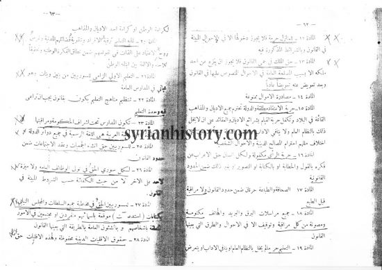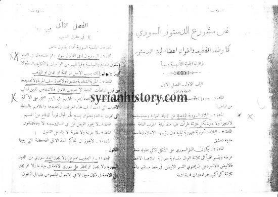 الصفحة الثانية من مشروع الدستور السوري الذي وضعته الجمعية التأسيسية عام 1928