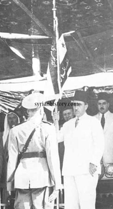 •  رفع العلم السوري المنصوص عليه في دستور عام 1930 لأول مرة في سماء سوريا عام 1932.